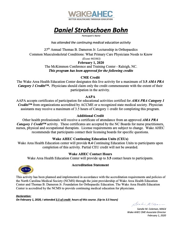 27th Annual Dameron Lectureship in Orthopaedics – Wake AHEC | NC State University